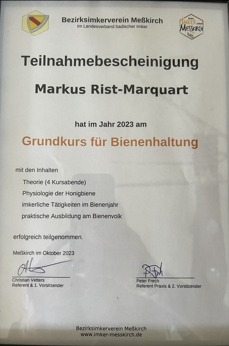 2023 Lehrgang zur Bienenhaltung absolviert